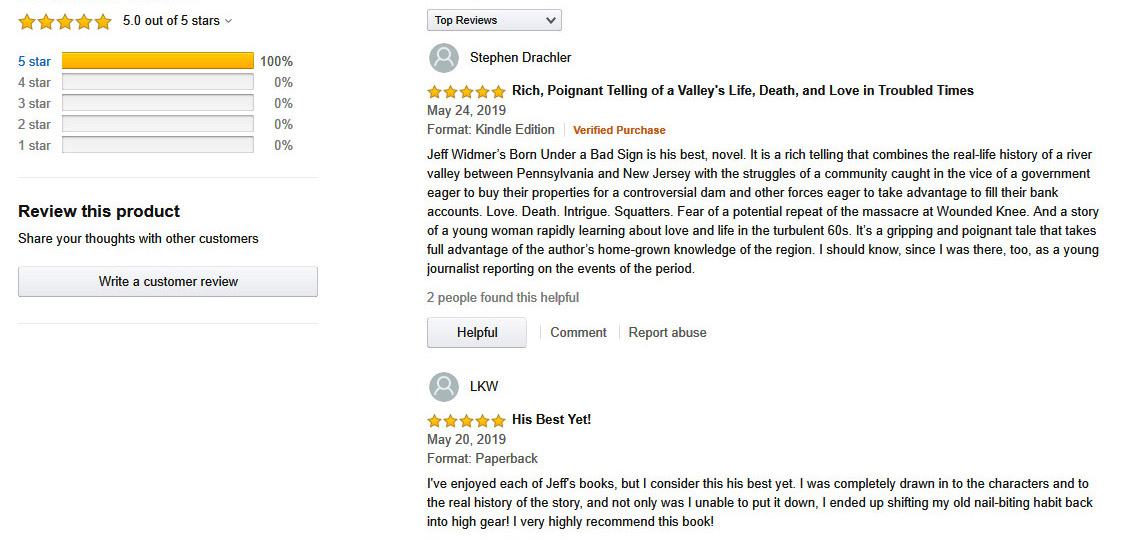Born Under a Bad Sign, my novel of the turmoil of the 1960s, is garnering positive reviews from the people who witnessed one of the book’s central conflicts—the damming of the Delaware River.